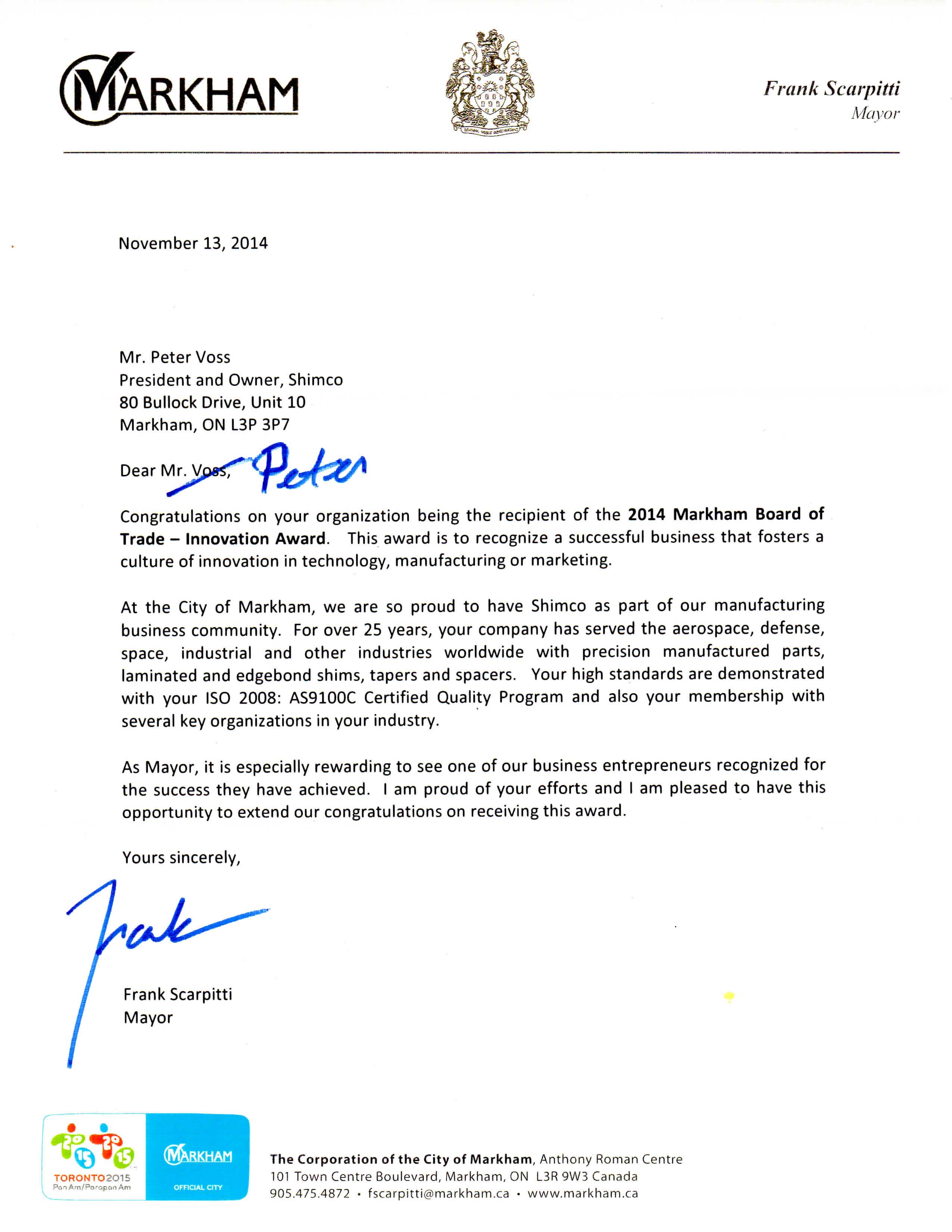 Letter from Markham Mayor Published October 22, 2017 at 2550 × 3300 in Letter from Markham Mayor ← Previous Next →